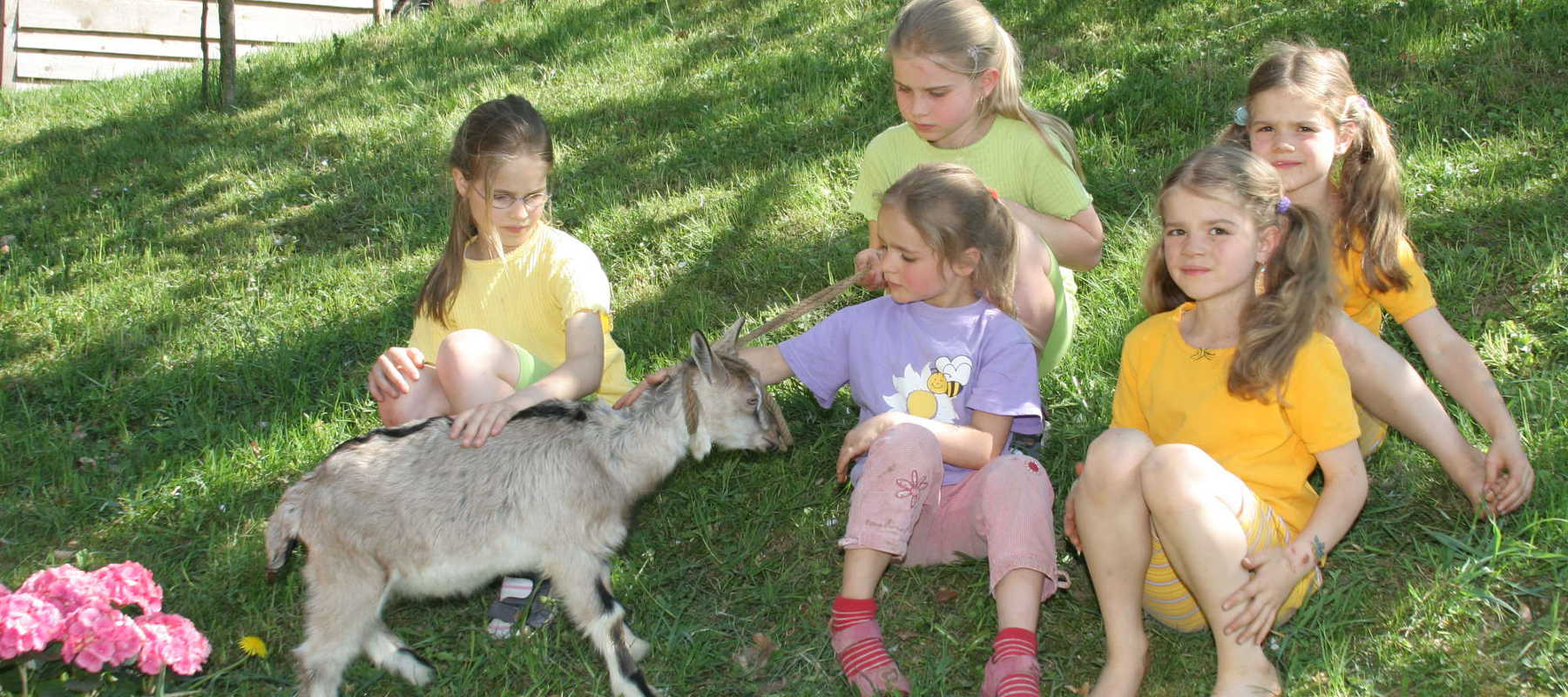 Auf unserem Hof mit aktiver Landwirtschaft und Tierhaltung können Sie mit Ihren Kindern aber auch richtig mit anpacken. In den Ferien auf dem Bauernhof sorgt gerade der Kontakt zu den Hoftieren für strahlende Kindergesichter. Die Kleinen streicheln Katzen und füttern Kaninchen mit Löwenzahn.